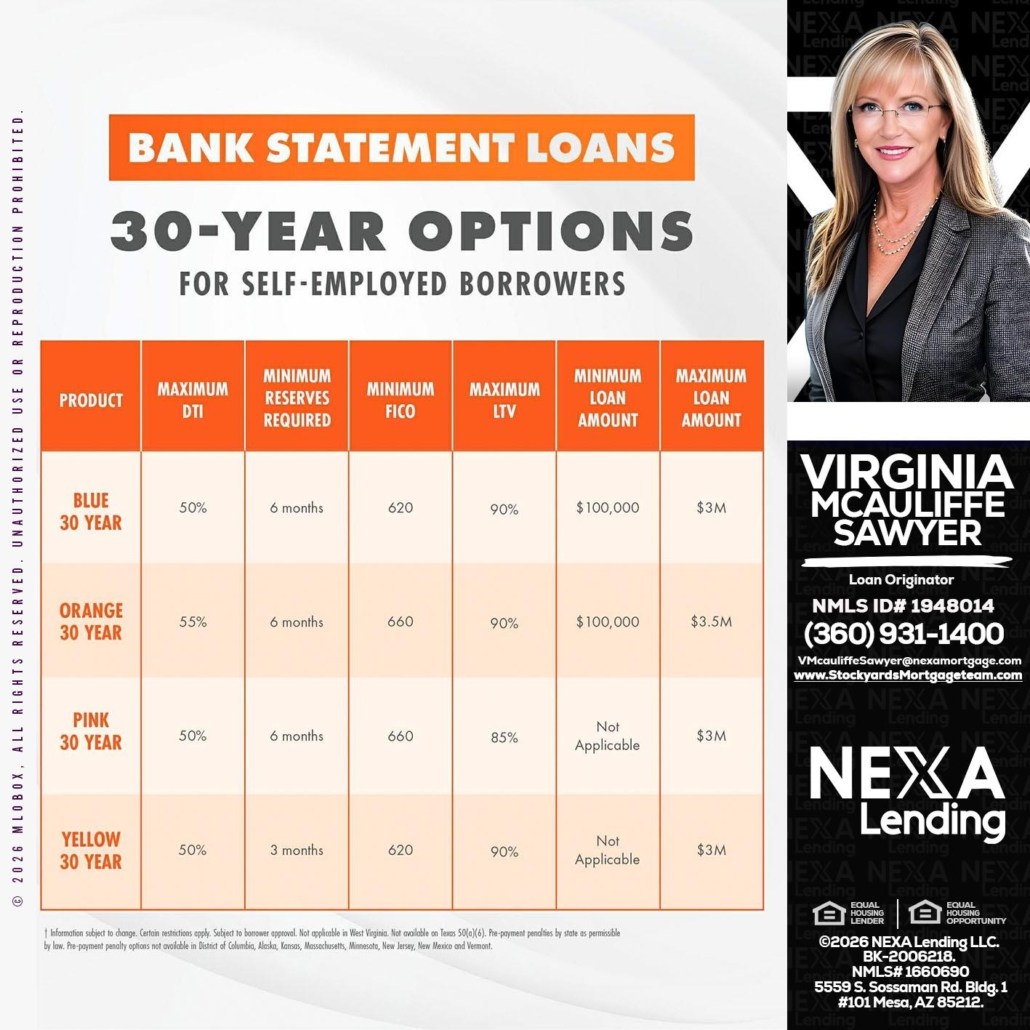 Hi, my name is Virginia McAuliffe Sawyer. I’m a Loan Officer with NEXA Lending LLC., offering personalized mortgage solutions, fast customized quotes, great rates and service with integrity.