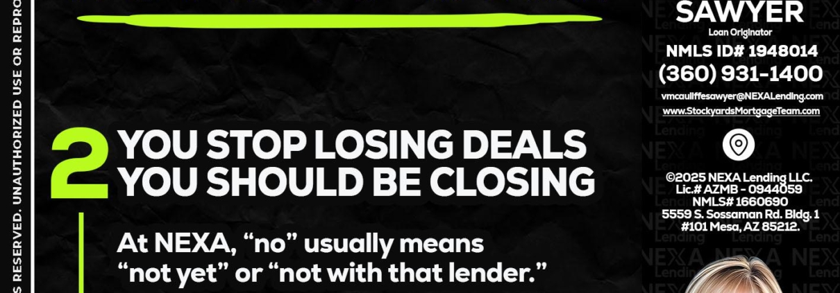 Hi, my name is Virginia McAuliffe Sawyer. I’m a Loan Officer with NEXA Lending LLC., offering personalized mortgage solutions, fast customized quotes, great rates and service with integrity.