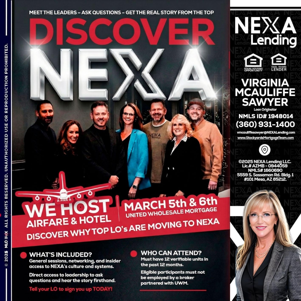 Hi, my name is Virginia McAuliffe Sawyer. I’m a Loan Officer with NEXA Lending LLC., offering personalized mortgage solutions, fast customized quotes, great rates and service with integrity.