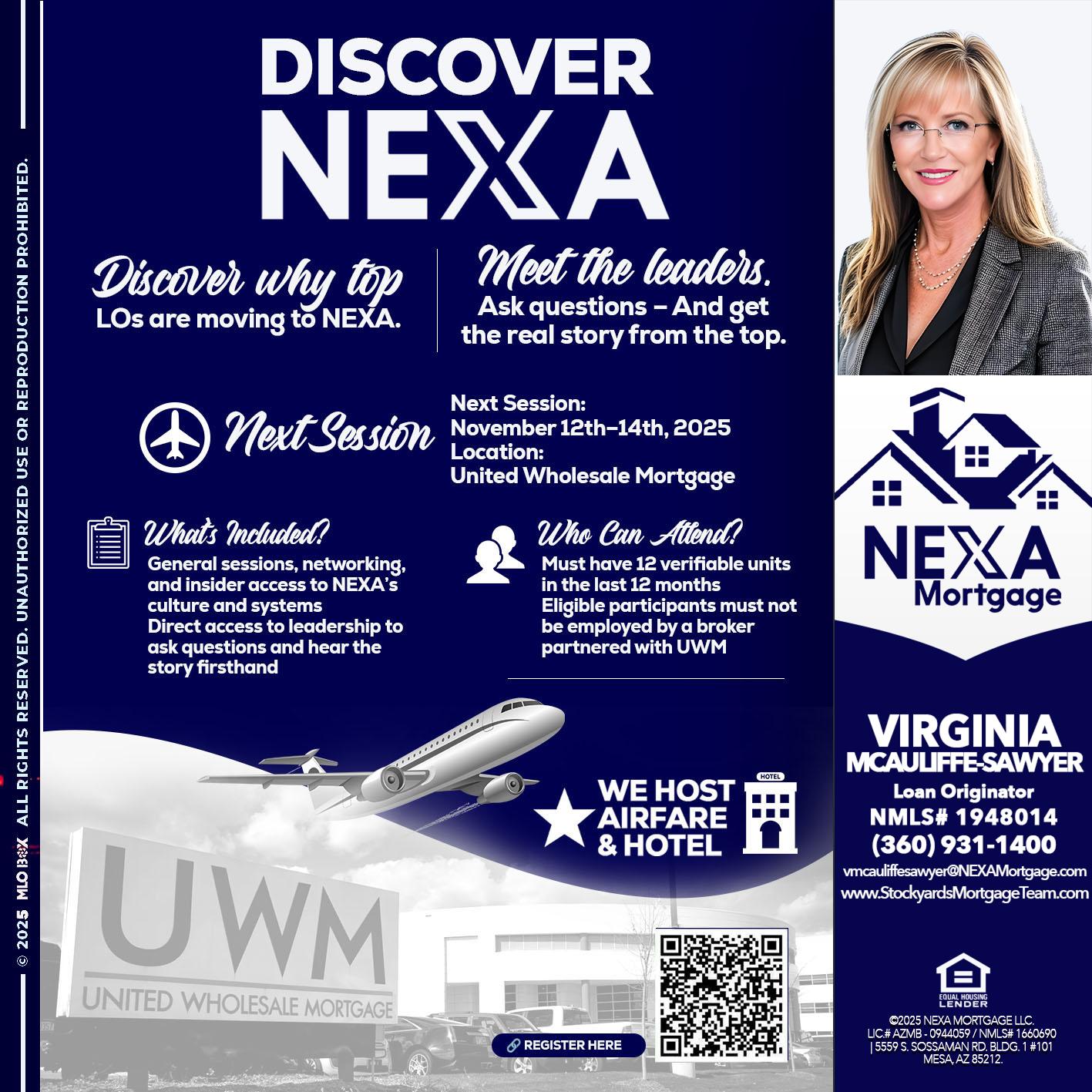 Hi, my name is Virginia McAuliffe Sawyer. I’m a Loan Officer with NEXA Mortgage LLC., offering personalized mortgage solutions, fast customized quotes, great rates and service with integrity.