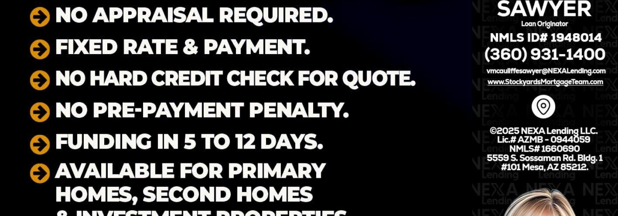 Hi, my name is Virginia McAuliffe Sawyer. I’m a Loan Officer with NEXA Lending LLC., offering personalized mortgage solutions, fast customized quotes, great rates and service with integrity.