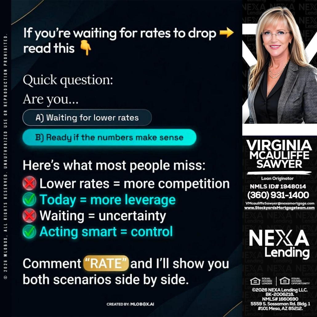 Hi, my name is Virginia McAuliffe Sawyer. I’m a Loan Officer with NEXA Lending LLC., offering personalized mortgage solutions, fast customized quotes, great rates and service with integrity.