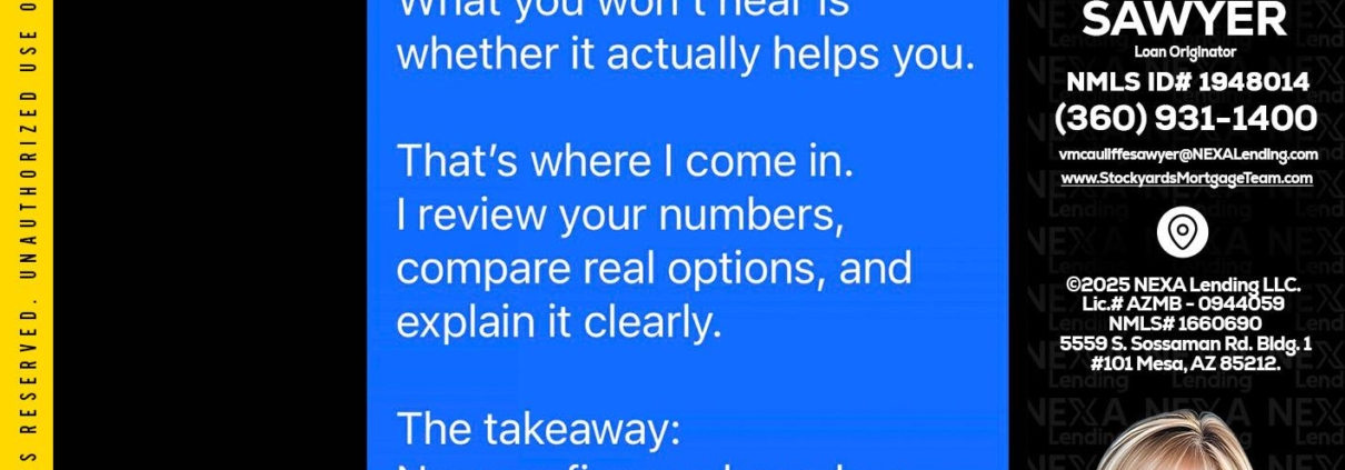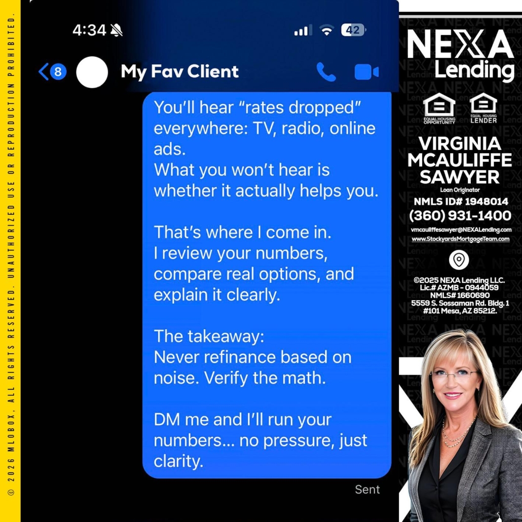 Hi, my name is Virginia McAuliffe Sawyer. I’m a Loan Officer with NEXA Lending LLC., offering personalized mortgage solutions, fast customized quotes, great rates and service with integrity.