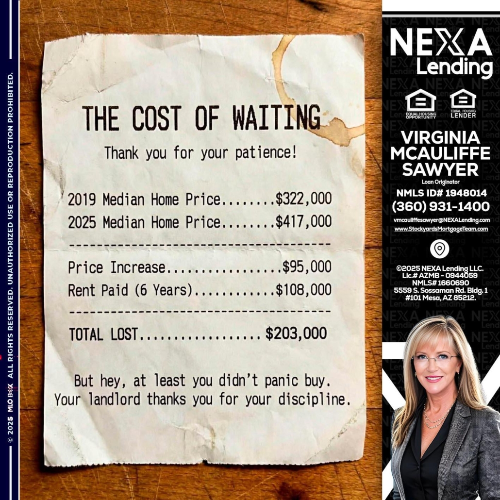 Hi, my name is Virginia McAuliffe Sawyer. I’m a Loan Officer with NEXA Lending LLC., offering personalized mortgage solutions, fast customized quotes, great rates and service with integrity.