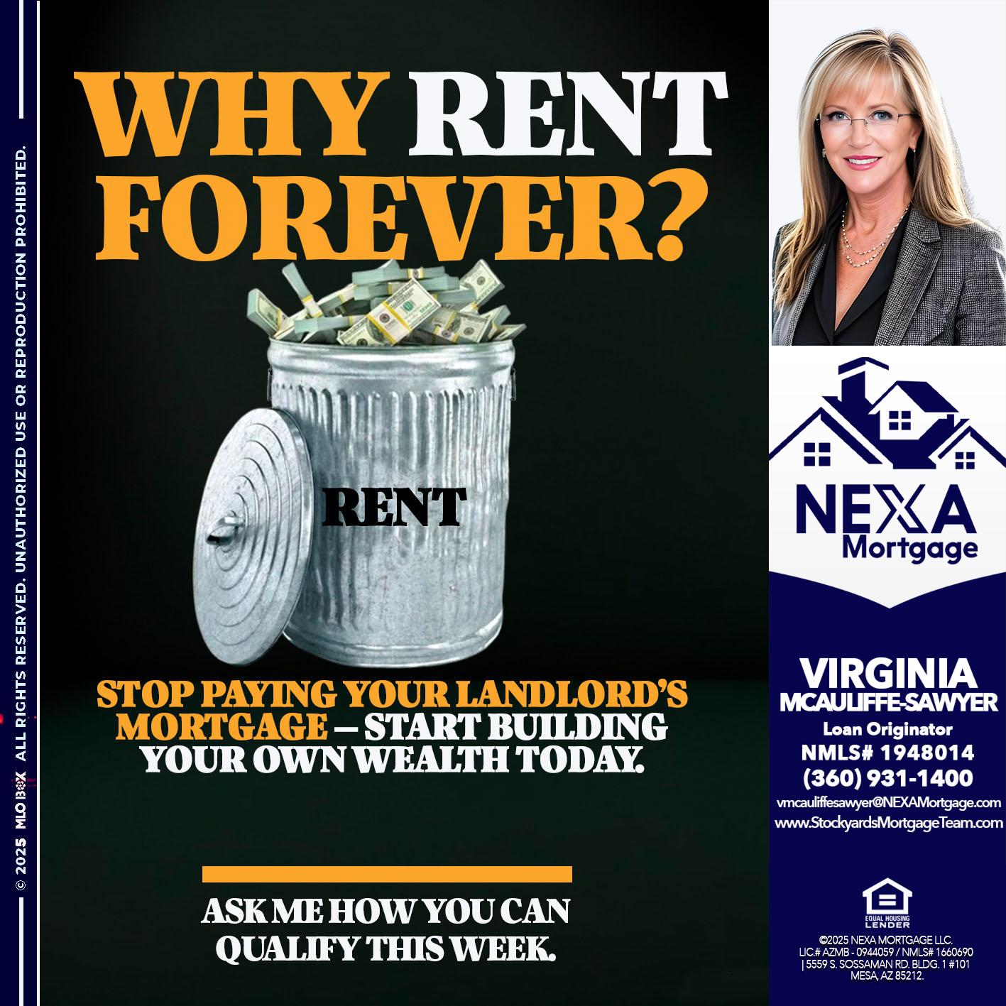 Hi, my name is Virginia McAuliffe Sawyer. I’m a Loan Officer with NEXA Mortgage LLC., offering personalized mortgage solutions, fast customized quotes, great rates and service with integrity.